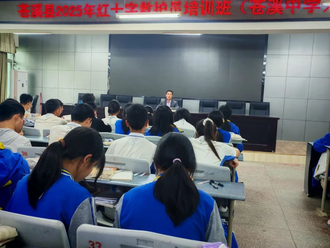 四川省苍溪中学校开展红十字救护员培训发表时间:2025-04-29 09:44 四川省苍溪中学校开展红十字救护员培训 为增强师生及后勤人员的应急救护意识,提升应对突发事件和意外伤害的自救互救能力,4 月 26 日,苍溪中学邀请县红十字会、广元市红十字会联合成功举办了 “2025 年红十字救护员培训班”。此次培训吸引了学校学科教师、后勤人员及班委干部等 200 余人积极参与。